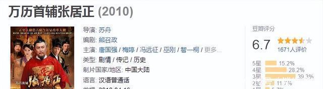 在郭东文之后,唐国强也演过张居正,但因为被认为演得不像,并没有多少人提及。 这是一部同样改编自熊召政小说的电视剧《万历首辅张居正》,但改编并不算成功,豆瓣评分仅6.7分。