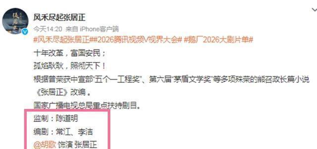 头号电影院懂小姐(topcinema原创,严禁转载) 胡歌出演张居正,被网友抵制了。 刚刚官宣的历史大剧《风禾尽起张居正》,胡歌饰演张居正,陈道明监制,编剧常江(《军师联盟》)和李洁,导演尚未官宣。